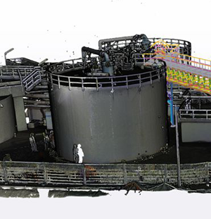 à partir des scanner 3d relevés sur le site de production du client, nos ingénieurs et techniciens, ont disposé les éléments techniques des passerelles, afin que celles ci se positionnent au centimètre près sur les structures existantes.